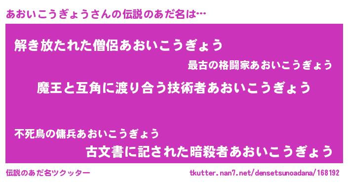 | ヒーロー風カッコイイあだ名 | 『愛の使者あおいこうぎょう』 |