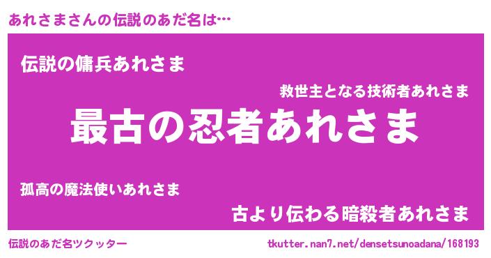 | 意味不明あだ名 | 『あれさまフォーエバー』『自称あれさま』 |