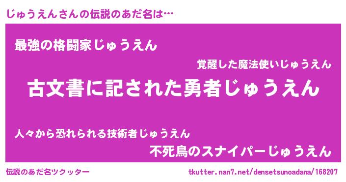 | ヒーロー風カッコイイあだ名 | 『ネオジュウエン』『仮面ジュダー』 |