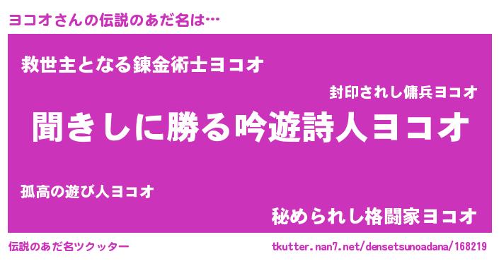 | ファンタジー風あだ名 | 『ユリヨコヴァット』『ヨコディッシュ』 |