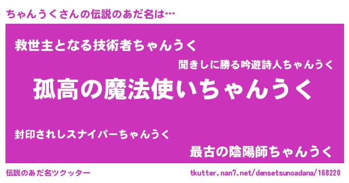 | 意味不明あだ名 | 『自称ちゃんうく』 |