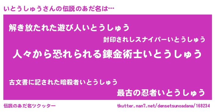 | ヒーロー風カッコイイあだ名 | 『正義の使者いとうしゅう』 |