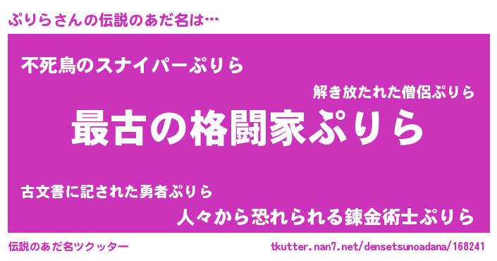 | 意味不明あだ名 | 『ぷりらフォーエバー』『ペロリンぷりら』 |
