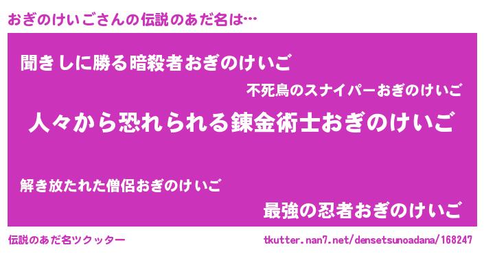 | ヒーロー風カッコイイあだ名 | 『友情の使者おぎのけいご』 |