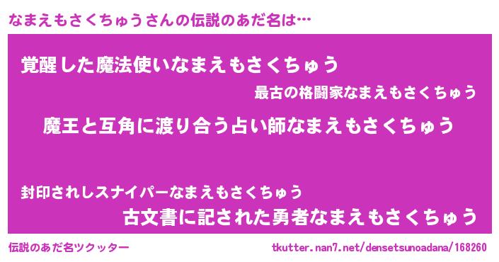 | ヒーロー風カッコイイあだ名 | 『サイバー戦士ナマエモサクチュウ』 |