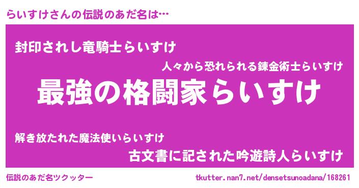 | 欧米人風あだ名 | 『らいすけクリステル』 |