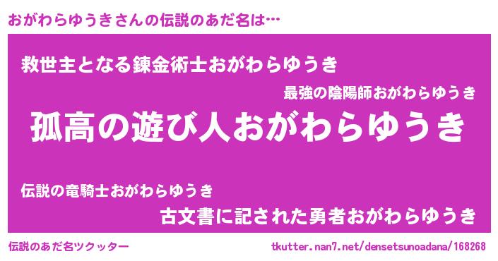 | 意味不明あだ名 | 『住所不定無職おがわらゆうき(91歳)』 |