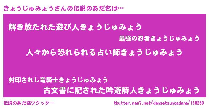 | 意味不明あだ名 | 『住所不定無職きょうじゅみょう(39歳)』 |