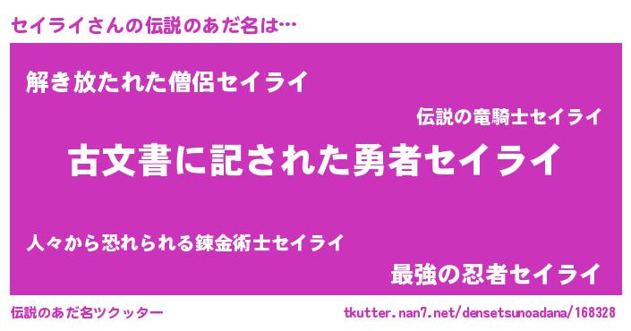 | ヒーロー風カッコイイあだ名 | 『仮面セイダー』『ネオセイライ』 |