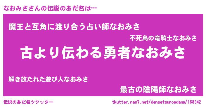 | 男性向けラノベタイトル風あだ名 | 『なおみさという概念が存在しない退屈な世界 』 |
