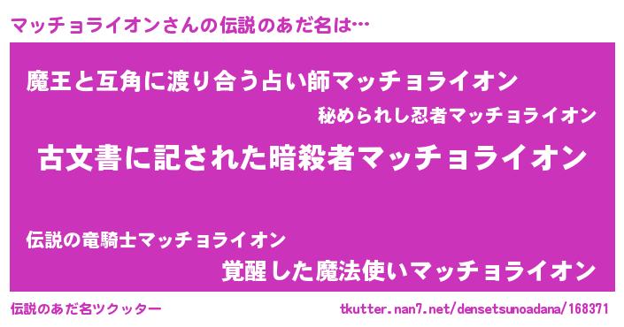 | 意味不明あだ名 | 『永久保存マッチョライオン』 |