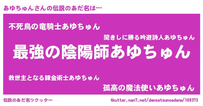 | ヒーロー風カッコイイあだ名 | 『ウルトラあゆちゅんマン』 |
