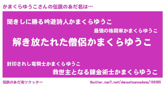 | ヘコむあだ名 | 『かま太郎』『かまくらゆうこ(笑)』 |