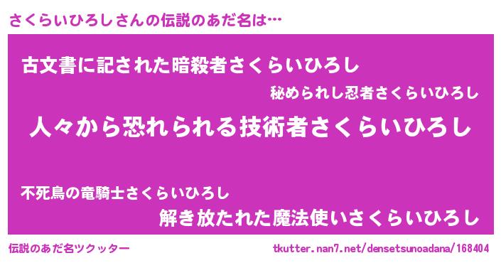 | ヘコむあだ名 | 『さくらいひろし(小並感)』『さくっぺ』 |