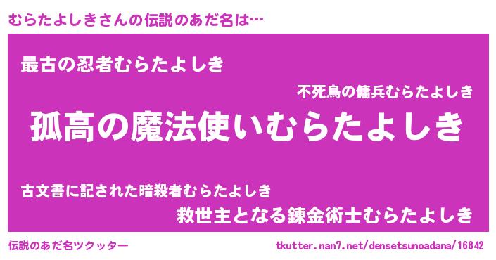 ヒーロー風カッコイイあだ名 | 『魔戒騎士ムラ』『最強戦士ムラタヨシキ』 |