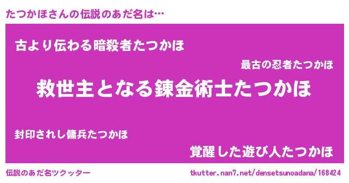 | ヒーロー風カッコイイあだ名 | 『仮面タツダー』『天空の使者たつかほ』 |
