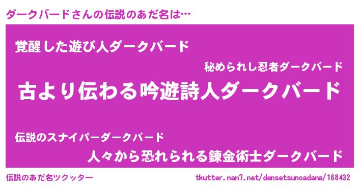 | 意味不明あだ名 | 『自称ダークバード』 |
