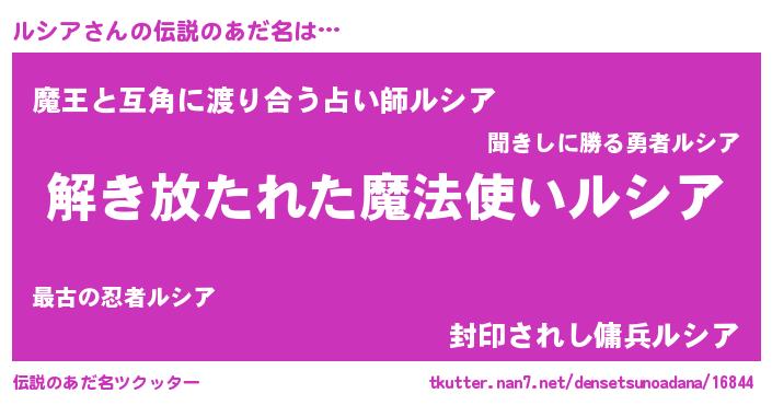| 意味不明あだ名 | 『とにかく怪しいルシア』 |