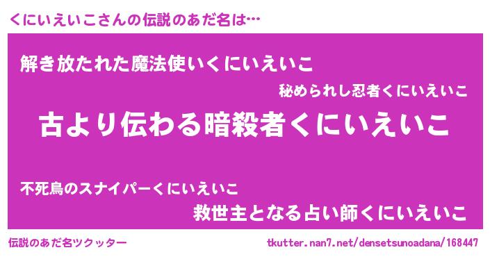 | 意味不明あだ名 | 『永久保存くにいえいこ』 |