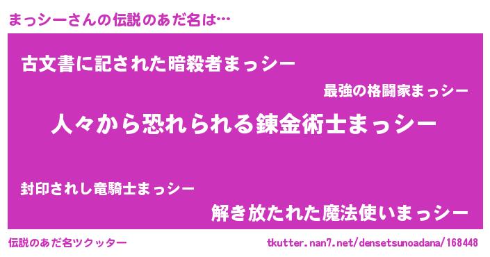| 意味不明あだ名 | 『めかぶ科まっシー属』『自称まっシー』 |