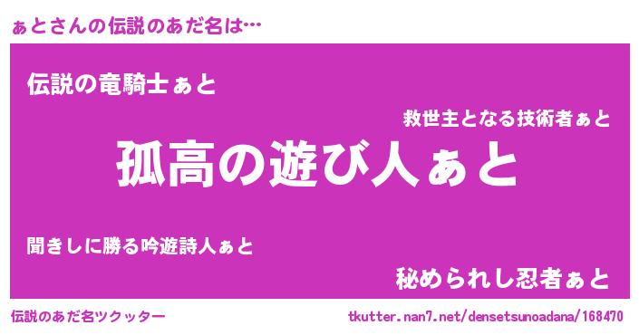 | 意味不明あだ名 | 『とにかく怪しいぁと』『もやし科ぁと属』 |