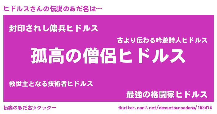 | ヒーロー風カッコイイあだ名 | 『黄金騎士ヒド』『仮面ヒドダー』 |
