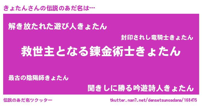 | ヒーロー風カッコイイあだ名 | 『天空の使者きょたん』『仮面キョダー』 |