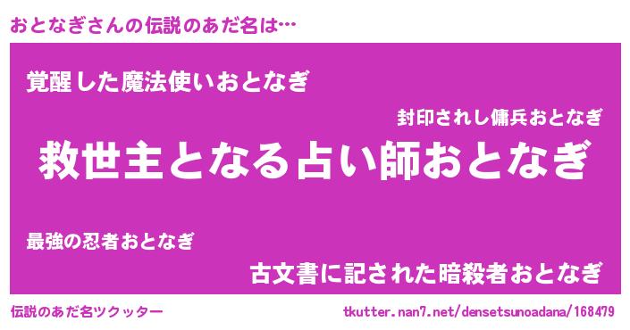 | 意味不明あだ名 | 『自称おとなぎ』『永久保存おとなぎ』 |