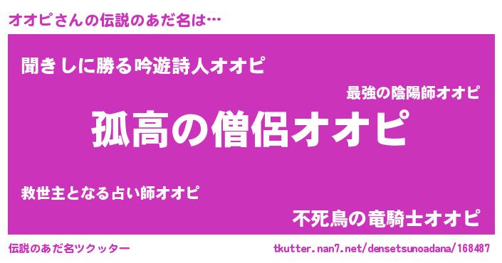 | 女子向けラノベタイトル風あだ名 | 『オオピアンティーク』 |