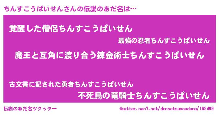 | 意味不明あだ名 | 『自称ちんすこうぱいせん』 |