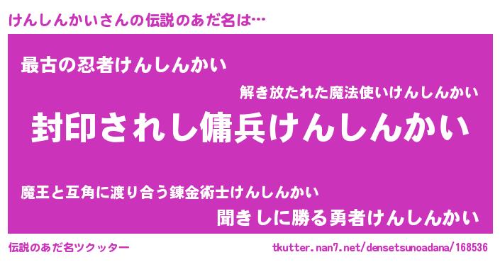 | ヒーロー風カッコイイあだ名 | 『スーパーケンシンカイ』『暗黒騎士ケン』 |