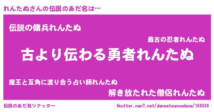 | 女子向けラノベタイトル風あだ名 | 『れんたぬアンティーク』 |