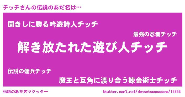 | 男性向けラノベタイトル風あだ名 | 『Re:チッチから始める異世界生活』 |