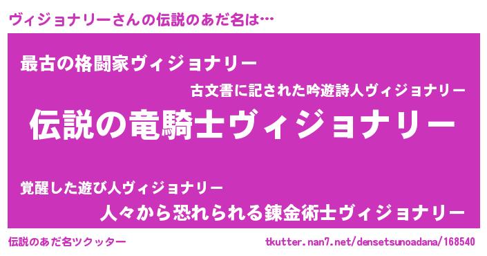 | 胡散臭い通販商品みたいなあだ名 | 『必ず成功するブレスレット…その名も「ヴィジョナリー」』 |
