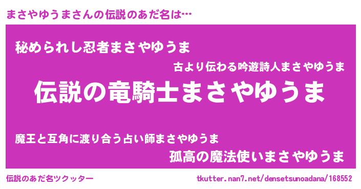 | ヒーロー風カッコイイあだ名 | 『スーパーマサヤユウマ』『黄金騎士マサ』 |