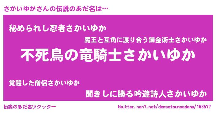 | ヒーロー風カッコイイあだ名 | 『スーパーサカイユカ』『ネオサカイユカ』 |