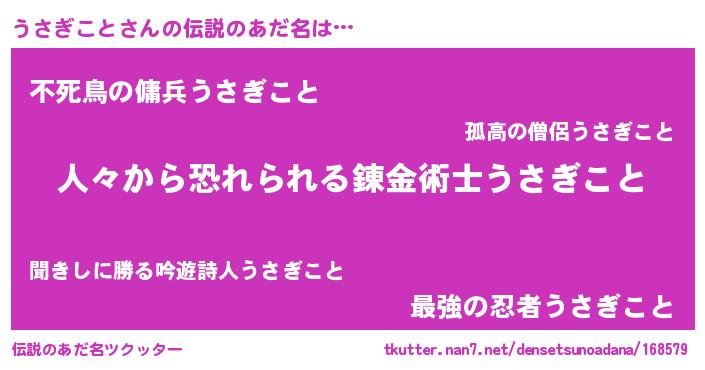 | ヒーロー風カッコイイあだ名 | 『仮面ウサダー』『友情の使者うさぎこと』 |