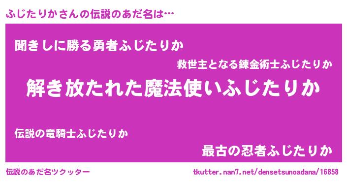 | 女子向けラノベタイトル風あだ名 | 『闇のふじたりか』 |