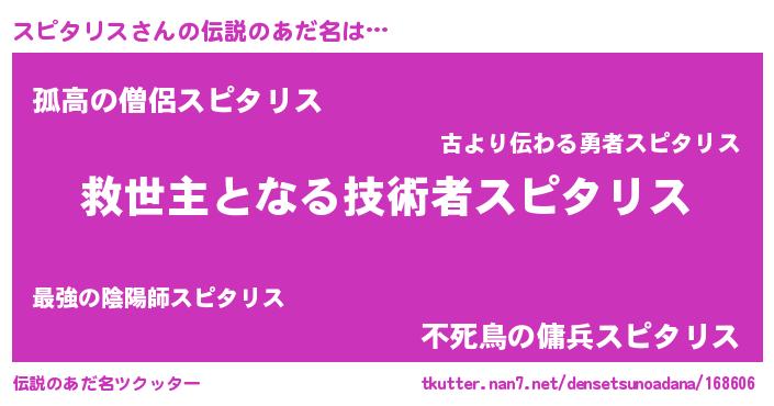| ヒーロー風カッコイイあだ名 | 『天空の使者スピタリス』『黄金騎士スピ』 |