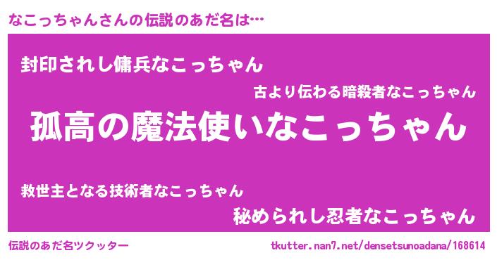 | 意味不明あだ名 | 『住所不定無職なこっちゃん(13歳)』 |