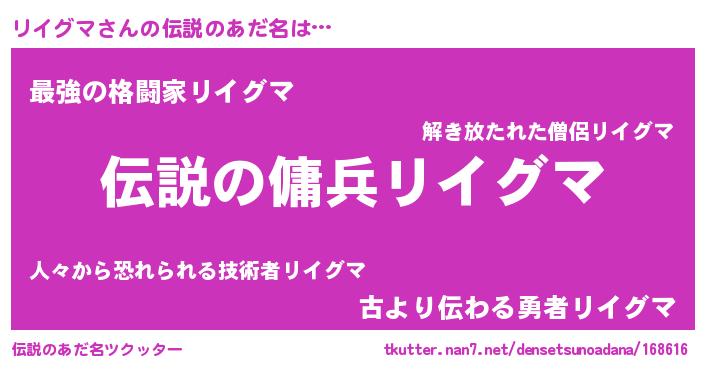 | ヒーロー風カッコイイあだ名 | 『スーパーリイグマ』『ネオリイグマ』 |