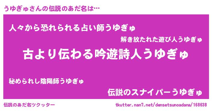 | 意味不明あだ名 | 『永久保存うゆぎゅ』『自称うゆぎゅ』 |