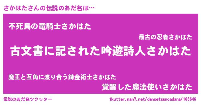 | 意味不明あだ名 | 『永久保存さかはた』『自称さかはた』 |