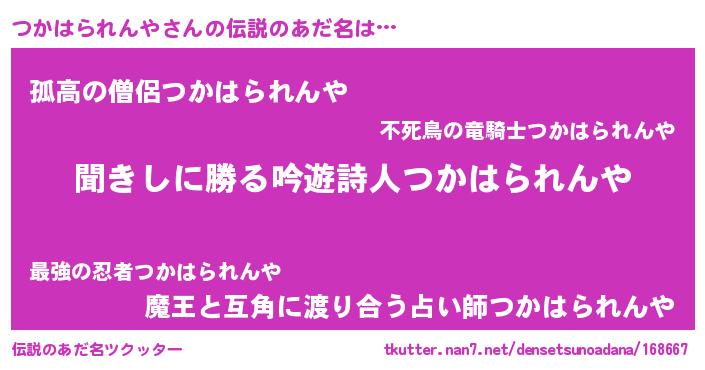 | 意味不明あだ名 | 『永久保存つかはられんや』 |