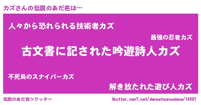 | ヒーロー風カッコイイあだ名 | 『ネオカズ』『超時空戦士カズ』 |