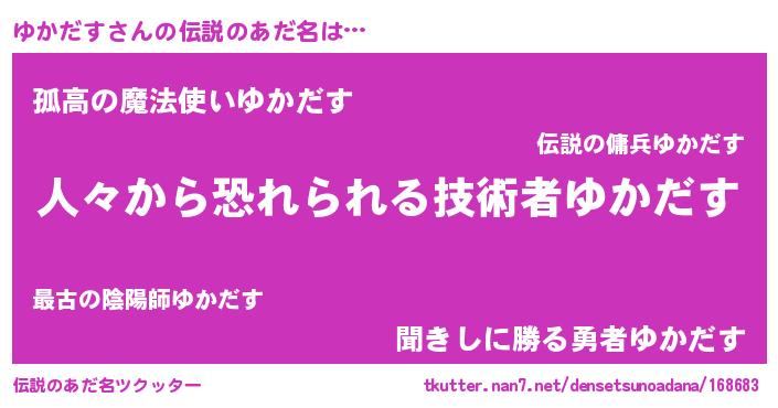 | ヒーロー風カッコイイあだ名 | 『正義の使者ゆかだす』『魔戒騎士ユカ』 |
