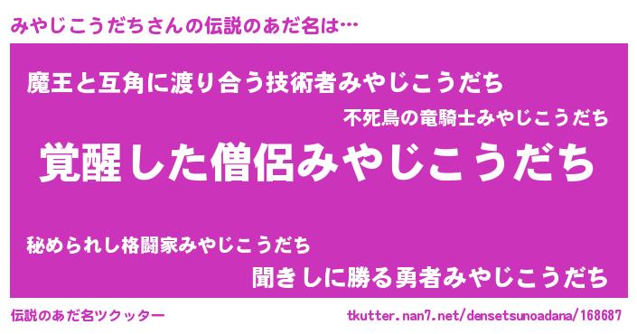 | ヘコむあだ名 | 『みやっ子』『みやじこうだち(笑)』 |