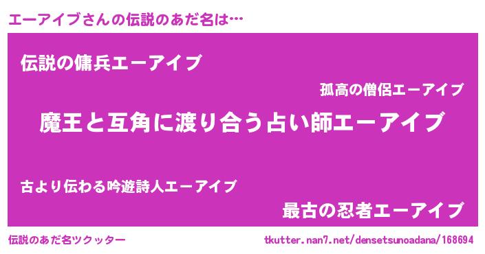 | ヒーロー風カッコイイあだ名 | 『仮面エーダー』『愛の使者エーアイブ』 |