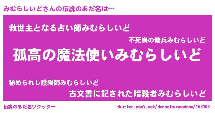 | 女子向けラノベタイトル風あだ名 | 『みむらしいどが死なない童話 林檎のみむらしいどの診療簿』 |