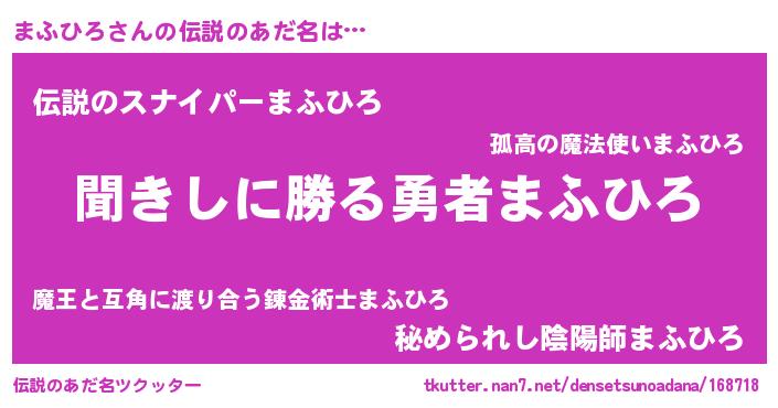| ヒーロー風カッコイイあだ名 | 『ネオマフヒロ』『超時空戦士マフヒロ』 |